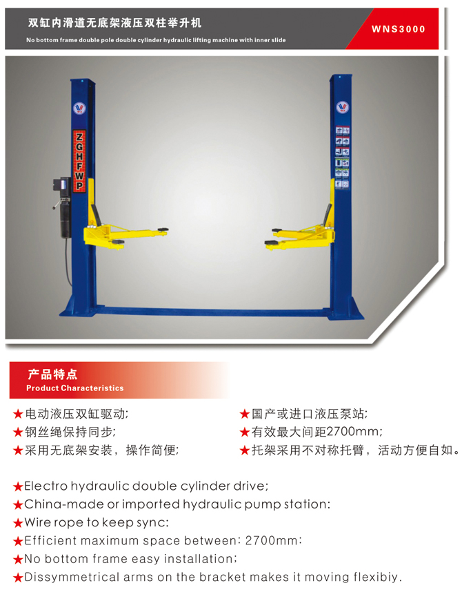 雙缸內(nèi)滑道無底架液壓雙柱舉升機(jī)