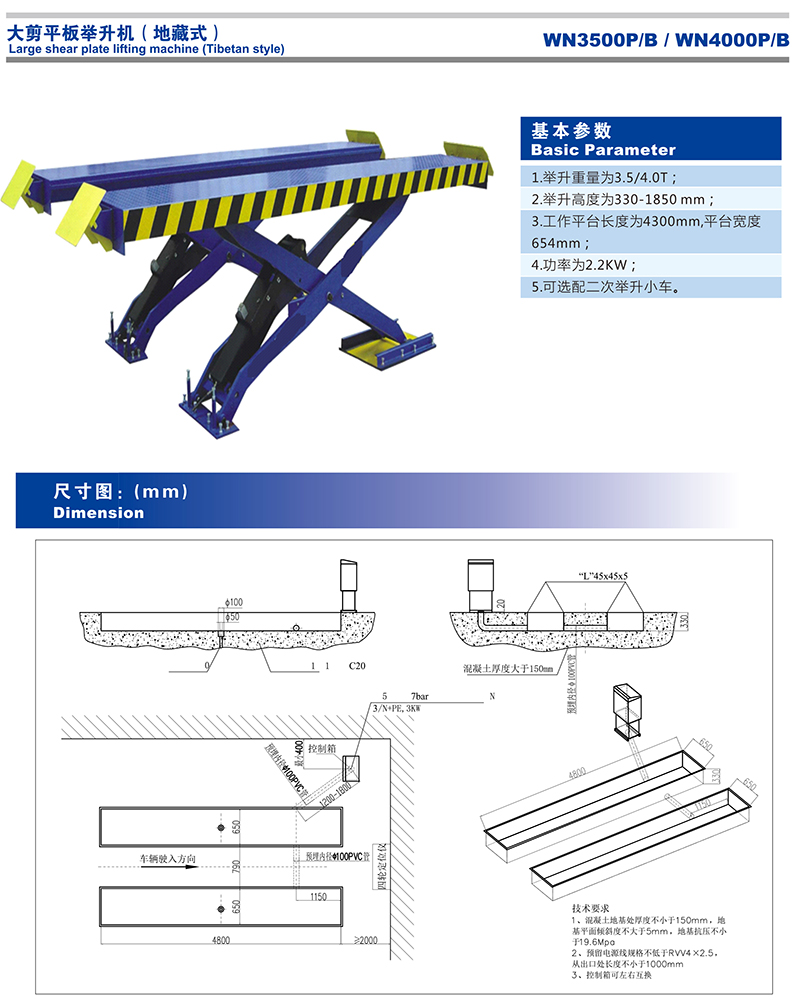 WN3500P/B/WN4000P/B大剪平板舉升機(地藏式)