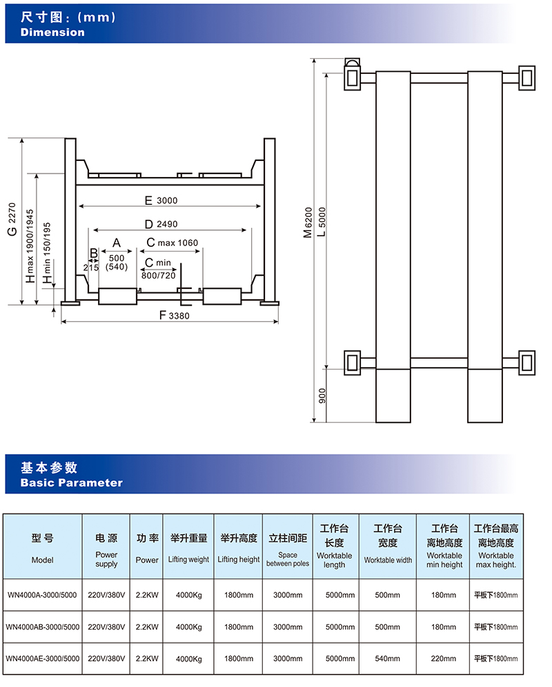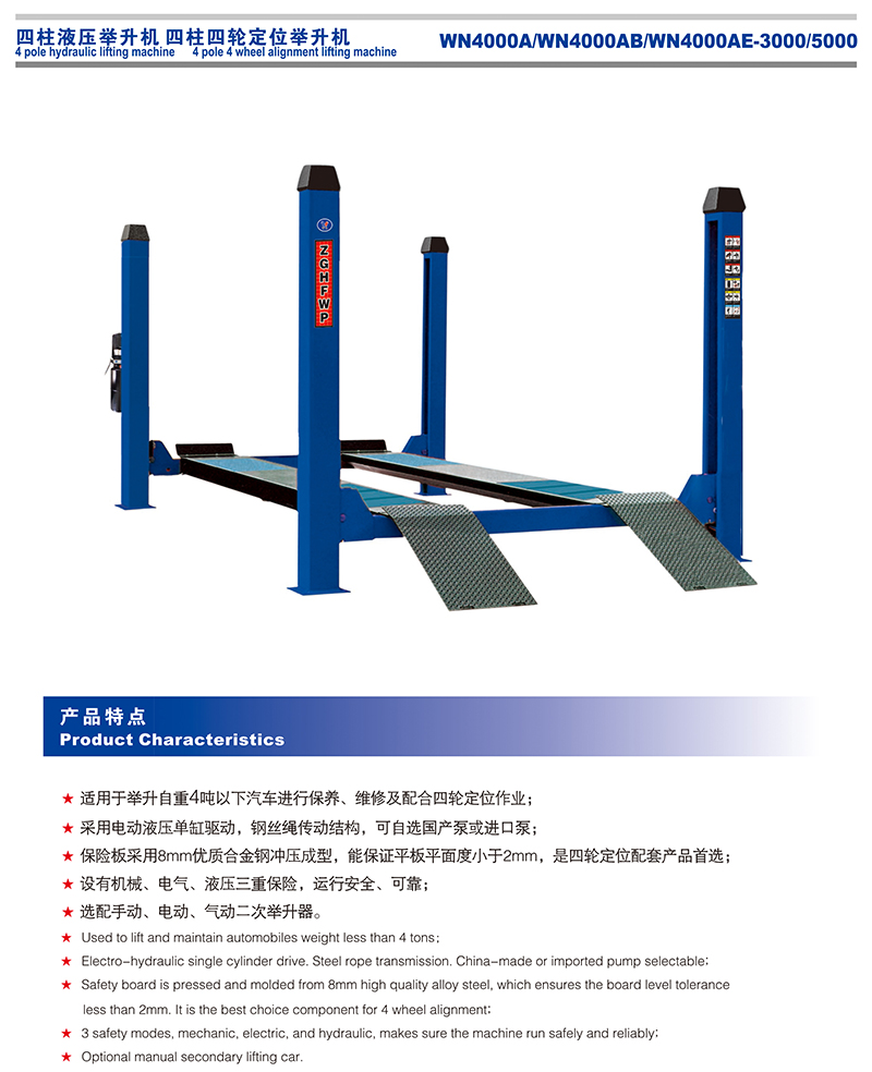 WN4000A/WN4000AB/WN4000AE-3000/5000出口四柱液壓舉升機、液壓四柱四輪定位舉升機