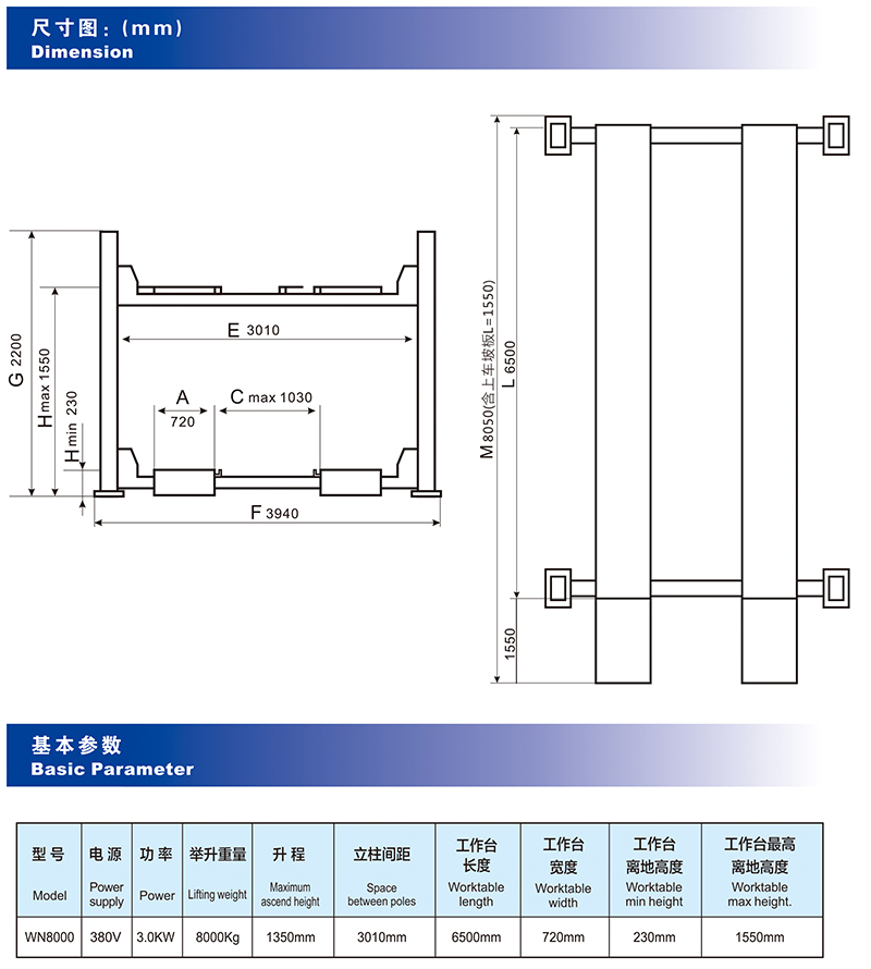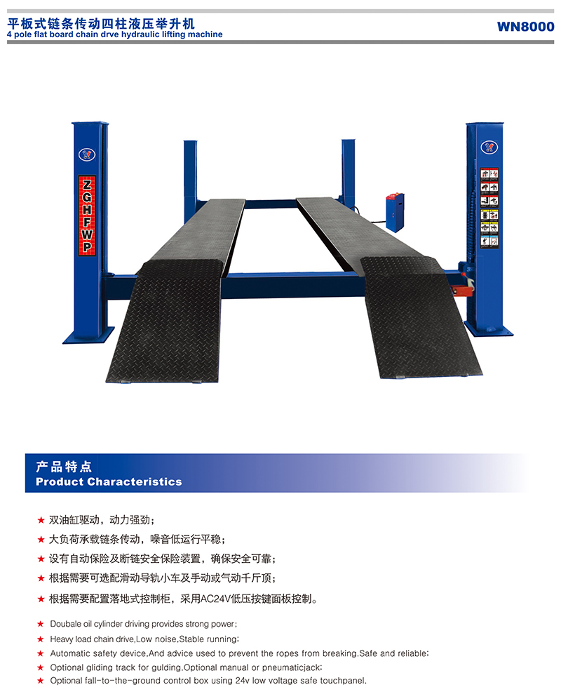 WN8000平板式鏈條傳動四柱液壓舉升機