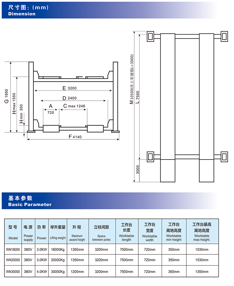 WN18000/WN20000/WN30000平板式鏈條傳動四柱液壓舉升機(jī)